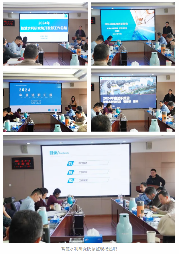 今年,自綜合部于11月下達年度考核計劃后,各部門嚴格落實《2024年度員工考核實施辦法》和各部門考核實施細則,以高度的責任感和使命感推進考核工作。在為期2日的會議中,工程院、規(guī)劃院、勘察院、建設管理院、智慧水利研究院5個生產(chǎn)部門和綜合部、市場部、財務部3個職能部門的負責人逐一結合本部門年度工作目標及開展情況進行年度總結工作匯報。其中,20位生產(chǎn)部門的所長/總監(jiān)就本項目部年度重點攻堅任務情況進行現(xiàn)場述職匯報。