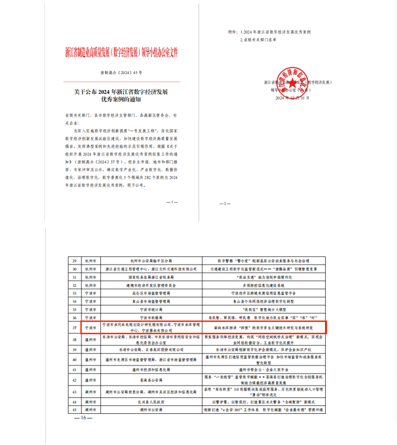 在產(chǎn)品創(chuàng)新方面,分別獲得第三屆寧波市專利創(chuàng)新大賽專利優(yōu)秀獎、“寧波市優(yōu)秀軟件產(chǎn)品”稱號、2024年“數(shù)據(jù)要素x”大賽浙江分賽獲優(yōu)勝獎,入選2024年度浙江省水利先進適用技術推廣指導目錄、2024年度寧波市優(yōu)質(zhì)產(chǎn)品推薦目錄和2024年浙江省數(shù)字經(jīng)濟發(fā)展優(yōu)秀案例近20項。