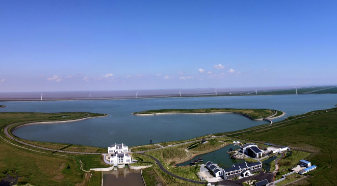 工程占地1萬畝,總庫容4508萬方,調(diào)蓄庫容3500萬方,屬中型水庫。其工程等別為Ⅲ等,主要建筑物級別為3級,洪水標(biāo)準(zhǔn)按50年一遇設(shè)計,300年一遇校核。工程主要建設(shè)內(nèi)容包括水庫堤壩長10929米,泵站1座(裝機容量800kw),放水閘1座,節(jié)制閘3座,排咸工程,同時建設(shè)湖心島、配套引水河道、橋梁、管理用房和綠化工程等。