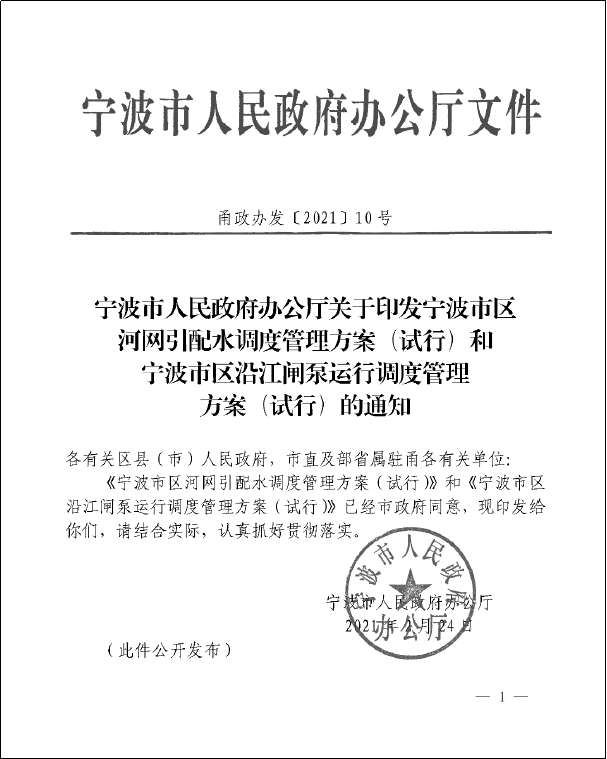 鑒于姚江二通道(慈江)工程的復(fù)雜性和特殊性,以及上下游調(diào)度的敏感性,為科學(xué)指導(dǎo)工程建成后的調(diào)度運行管理,研究提出的《姚江二通道(慈江)工程閘泵試運行調(diào)度規(guī)則》,于2021年2月24日經(jīng)寧波市人民政府辦公廳公開發(fā)布,成果應(yīng)用于2021年7月“煙花”臺風(fēng)防御當中。