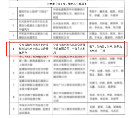 近日,浙江省水土保持學(xué)會第三屆優(yōu)秀設(shè)計(jì)評選獲獎名單出爐,15個獲獎工程中,我院成功鎖定一席!此次我院受寧海縣水利局委托開展實(shí)施的寧??h飲用水源地上游香榧經(jīng)濟(jì)林水土流失防治措施研究榮獲三等獎。該獎項(xiàng)由浙江省水土保持學(xué)會設(shè)立,每兩年評審一次,通過對水土保持規(guī)劃設(shè)計(jì)領(lǐng)域中取得優(yōu)異成績的集體和個人進(jìn)行表彰,從而推動全省水土保持行業(yè)的發(fā)展。