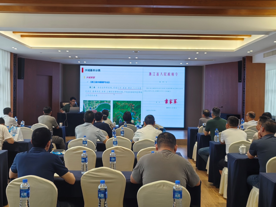培訓(xùn)現(xiàn)場(chǎng),我院規(guī)劃四所所長(zhǎng)楊益青憑借其扎實(shí)的學(xué)術(shù)功底與豐富的實(shí)踐經(jīng)驗(yàn),生動(dòng)呈現(xiàn)了海曙區(qū)這一歷史與現(xiàn)代交融之地的水文畫(huà)卷。他從水域基本分類(lèi)出發(fā),清晰介紹劃分區(qū)內(nèi)河道、湖泊、水庫(kù)、山塘等各類(lèi)水域,為參訓(xùn)人員構(gòu)建起海曙區(qū)水系結(jié)構(gòu)基本框架;隨后,依托《海曙區(qū)水域調(diào)查》的研究成果,系統(tǒng)介紹了當(dāng)前水域的分布情況、水域功能等關(guān)鍵信息,并緊扣《海曙區(qū)水域保護(hù)規(guī)劃》,深入淺出地闡述了未來(lái)水域的規(guī)劃布局。最后依托我院在該領(lǐng)域的最新技術(shù)和成功案例,結(jié)合水域歷史演變及近期變化,分享我院在水域管理保護(hù)方面的典型辦法和先進(jìn)舉措。