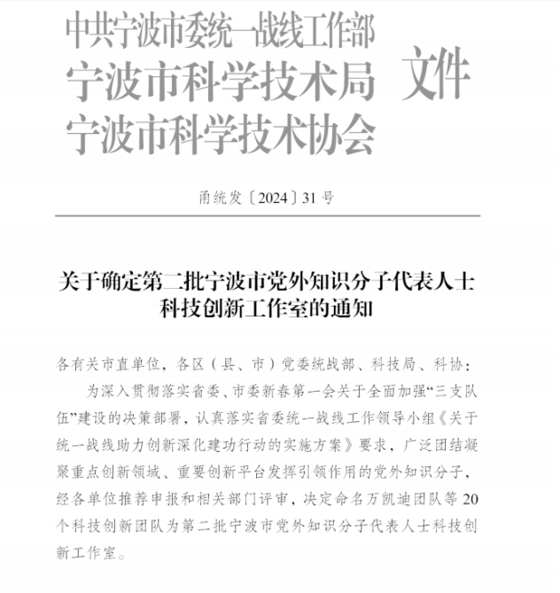 近日,寧波市統(tǒng)一戰(zhàn)線助力創(chuàng)新深化建功行動啟動儀式在寧波院士中心舉行。啟動儀式上,市委常委、統(tǒng)戰(zhàn)部部長林雅蓮為第二批寧波市黨外知識分子科技創(chuàng)新工作室團(tuán)隊(duì)授牌。寧波市黨外知識分子科技創(chuàng)新工作室由市委統(tǒng)戰(zhàn)部會同市科技局、寧波市科協(xié)認(rèn)定。我院張預(yù)定創(chuàng)新工作室位列其中。