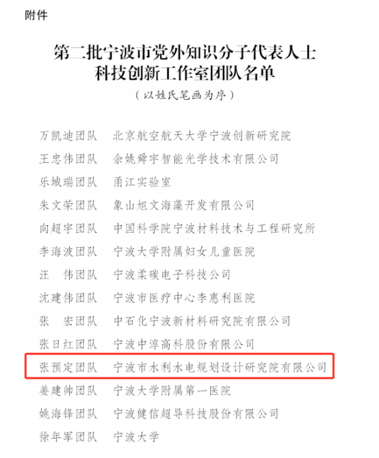 張預(yù)定創(chuàng)新工作室榮獲“寧波市黨外知識分子科技創(chuàng)新工作室”授牌,是對我院在水利領(lǐng)域深耕創(chuàng)績的肯定和認(rèn)可,也對我院將來的工作推進(jìn)提出了更高的標(biāo)準(zhǔn)和要求。為此,我院將以此為契機(jī),積極發(fā)揮榜樣團(tuán)隊(duì)的示范引領(lǐng)作用,進(jìn)一步激勵(lì)和支持廣大員工立足崗位、投身科技創(chuàng)新,以實(shí)干思維緊扣謀事成事的主旋律,以鉆研精神夯實(shí)攻堅(jiān)克難的基本功,力求在新質(zhì)生產(chǎn)力培育發(fā)展上再創(chuàng)佳績,為寧波水利高質(zhì)量發(fā)展作出新貢獻(xiàn)。